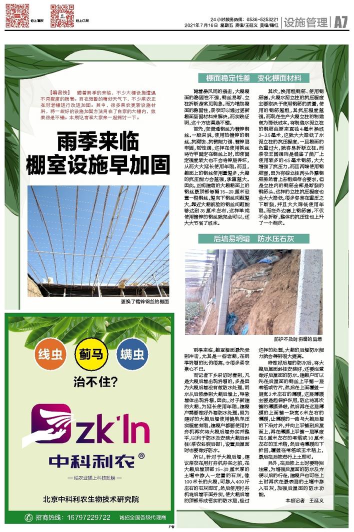 雨季来临 棚室设施早加固