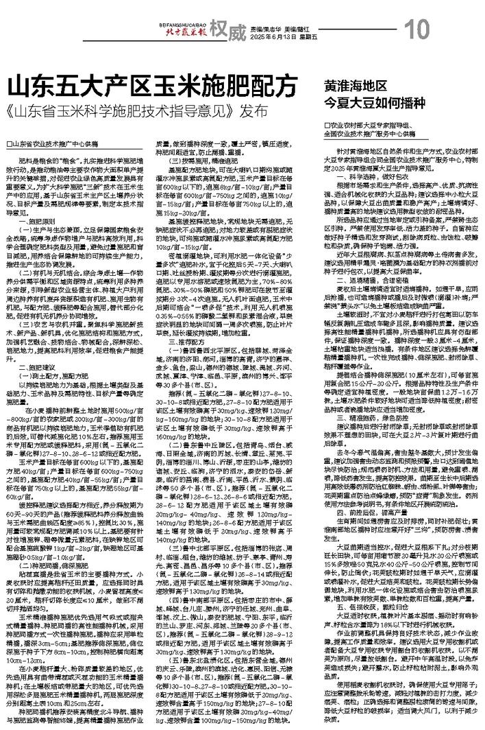 山东五大产区玉米施肥配方